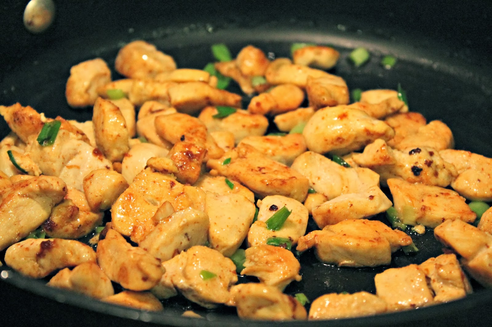 2.       Using the same pan, add chicken.  Cook about 5 minutes until cooked through.  Season with seasoned salt.  Add the scallions and cook an additional 2 minutes.  Remove from heat.