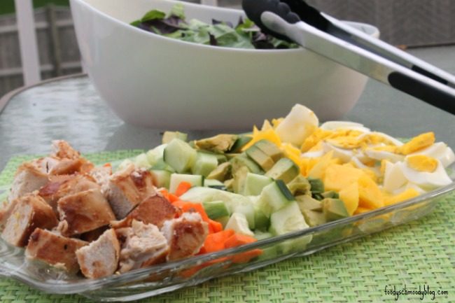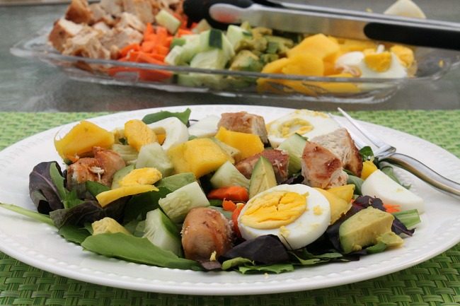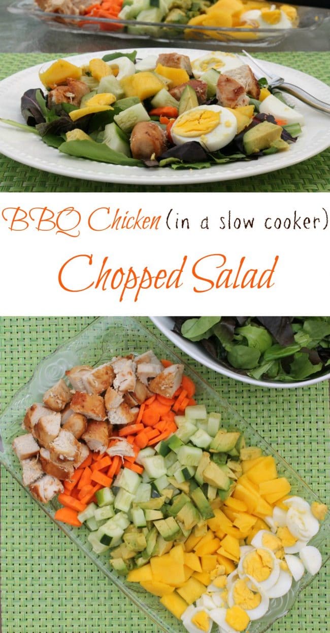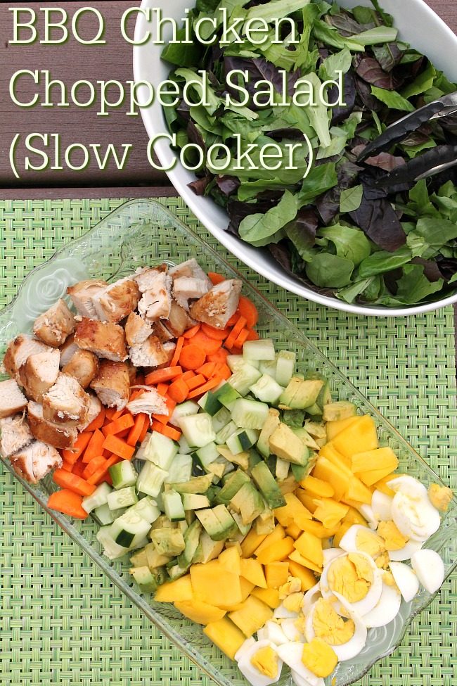 Slow Cooker BBQ Chicken Chopped Salad - Easily prepared chicken in a slow cooker is the star of this chopped salad that is served in a way for everyone to customize their own salad experience.