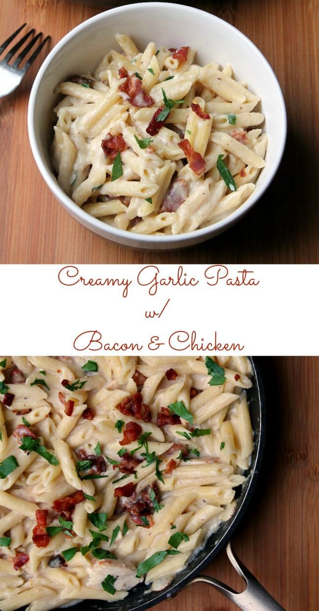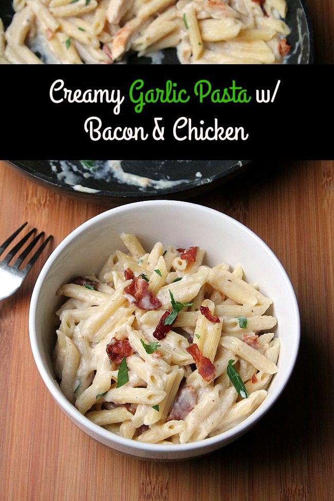 Creamy Garlic Pasta w/ Bacon and Chicken