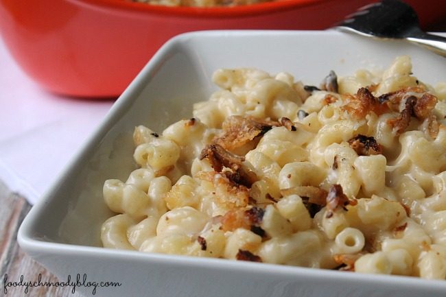 This is a great mac n cheese recipe. LOVE gruyere and the addition of the onion strings!