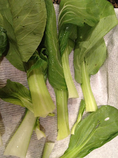 Melt butter over medium heat in pan.  Add garlic and crushed pepper, cook about 1 minute.  Add bok choy to pan and cook until starting to wilt, stirring often.  Add vegetable stock and cook on medium low about 5 minutes.  Season with salt and pepper to taste.