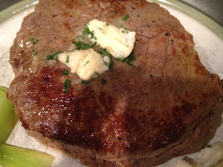 First you should start off by taking your steaks out of the fridge 30 minutres prior to cooking.  You don't want to put a super cold steak on a hot pan, it causes the meat to seize up and become tough.  While your steaks are coming to room temperature get started on the butter.
