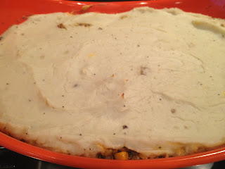 - enough mashed potato to cover the pan (I used 1 package of premade refrigerated mashed and it was the perfect amount)