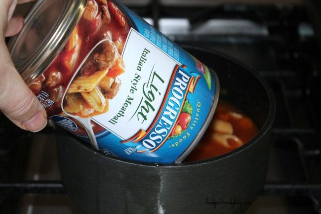 • 1 Can Progresso® Light Italian Style Meatball Soup prepared according to can instructions.