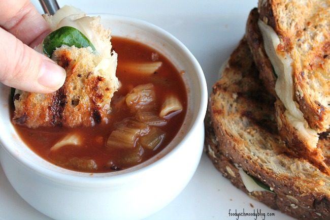 A toasted sandwich just begs to be dipped in a warm soup, doesn't it?  Just look at that cheese!