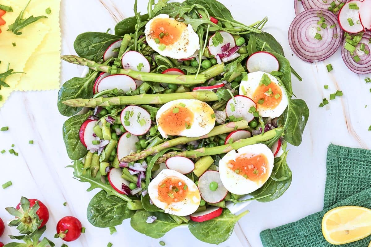 This spring vegetable salad has enough in it to be a whole lunch entree salad.