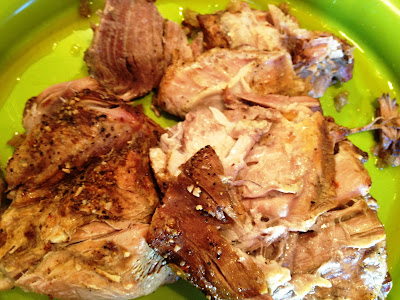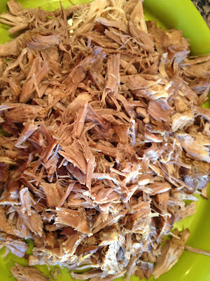 8. Using two forks, "pull" the pork in to shreds, being sure to remove any bones that might be in there.