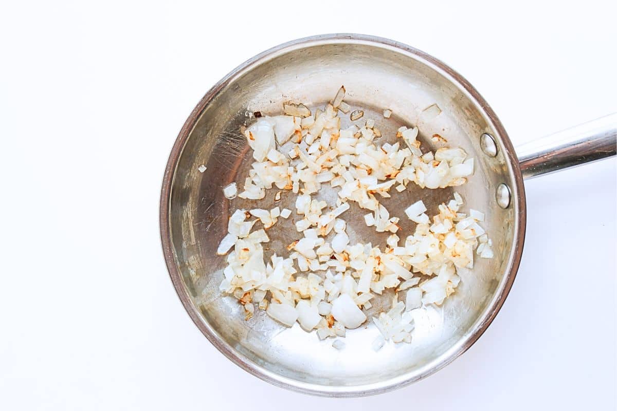 - Heat 1 tablespoon of oil in a large skillet over medium heat. Add the chopped onion and cook for 2–3 minutes or until softened.3 tablespoon neutral oil, ½ cup diced white onion