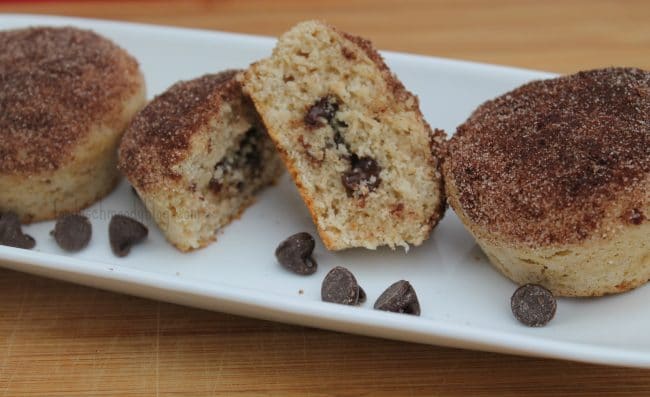 Okay, back to the Surprise Snickerdoodle Muffin - Since I wasn't going for a super chocolate filled dessert, I only used about 5 chocolate chips per muffin. If you want something ooey gooey and full of chocolate, just increase the amount of chocolate chips you use.