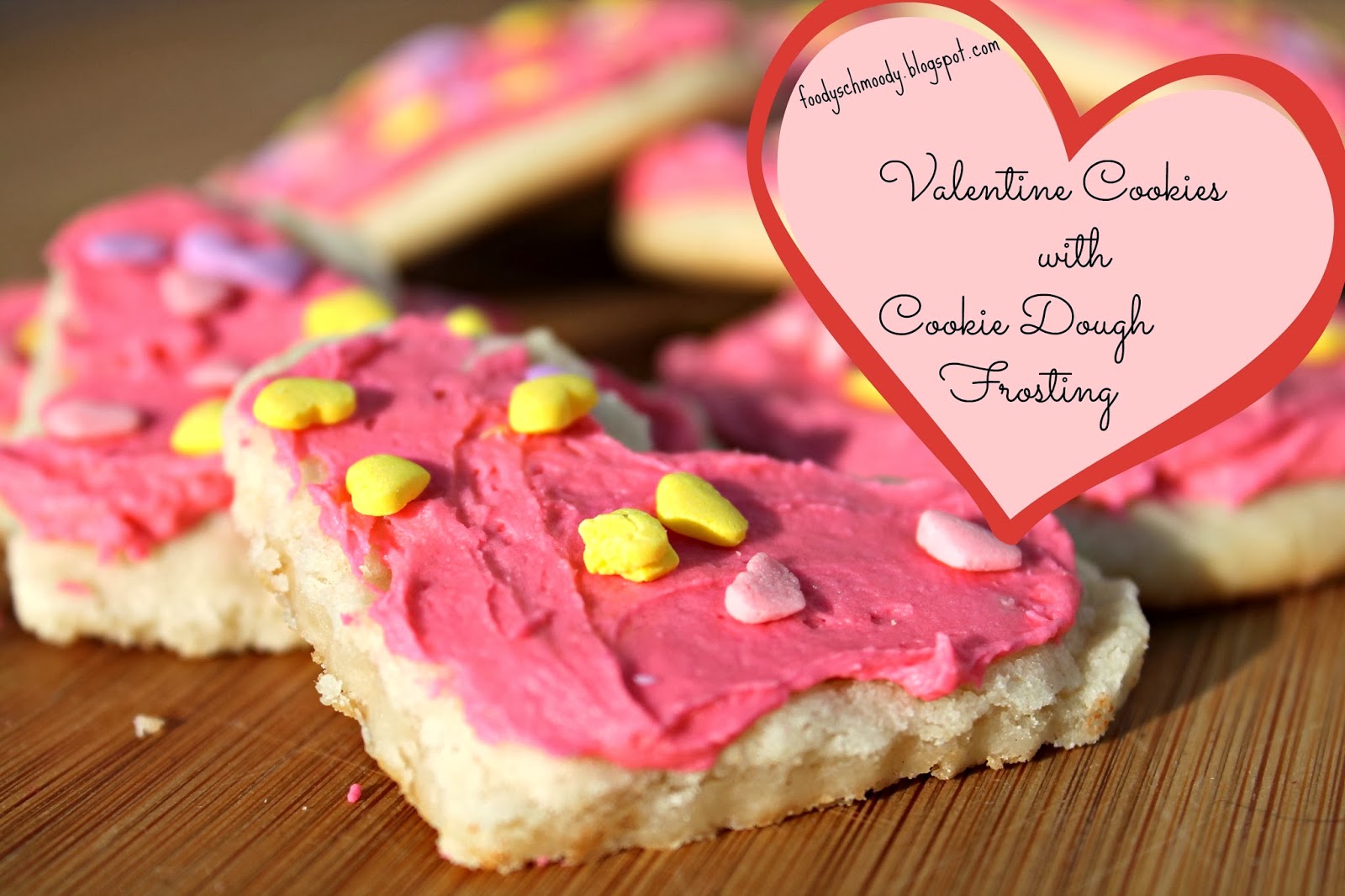 Yes, you read the title correctly, these Valentine Sugar Cookies do indeed have COOKIE DOUGH FROSTING. How yummy does that sound?