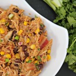 After four hours, remove chicken and shred. Pour liquid out of crock pot. Place shredded chicken back in crockpot. Add BBQ sauce, red onion, black beans, corn and bacon. Stir well to coat chicken. Cover and cook on low another 30 minutes.